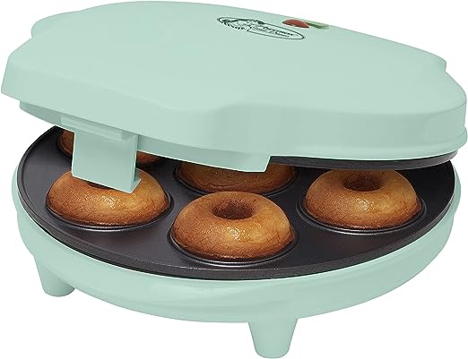 No pierdas la oportunidad de disfrutar de deliciosos donuts caseros con el Bestron Donut Maker. Con una potencia de 700 W y un peso de 1,26 kg, este aparato de plástico y metal en color menta será el complemento perfecto para tu cocina. Sus dimensiones de 25,7 x 20 x 9,3 cm lo hacen compacto y fácil de almacenar.