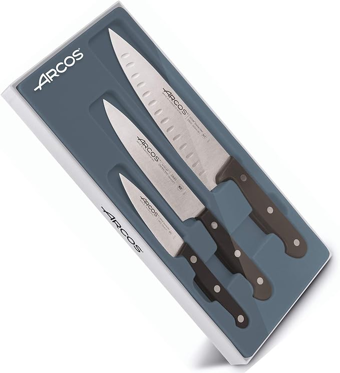 Este set incluye tres cuchillos de diferentes tamaños: uno de 200 mm, otro de 150 mm y uno más de 100 mm. No pierdas la oportunidad de hacerte con este chollo en cuchillos de cocina. El ARCOS Conjunto Cuchillos profesionales para cocinas, 3 piezas te ofrece calidad, diseño y durabilidad a un precio increíble. Aprovecha este descuento del 48% y añade este set a tu cocina. ¡No te arrepentirás!