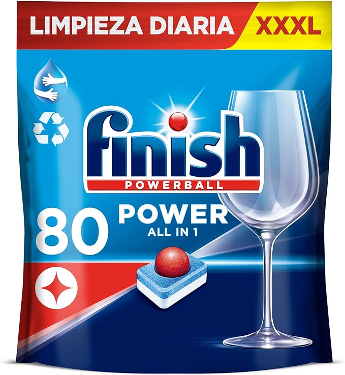 Descubre las increíbles pastillas para el lavavajillas de Finish Powerball. Limpieza y brillo diario a la primera, sin necesidad de prelavar los platos. Mejora tu experiencia de lavado con Finish y ahorra agua. ¡No te pierdas esta oferta con un descuento del 41%!