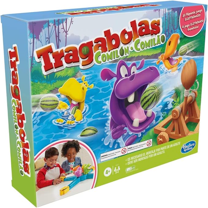 El Tragabolas comilón de Hasbro Gaming es un juego que pondrá a prueba tus habilidades y reflejos. El objetivo es conseguir acertar los lanzamientos de sandias en las bocas de los hipopótamos en movimiento, el primero en llegar a 5 gana. Con un peso de 2.3 kilogramos y unas dimensiones de 273.0 L x 342.9 H x 254.0 W (millimeters), este juego es perfecto para llevarlo a cualquier lugar y disfrutar de la diversión en cualquier momento.