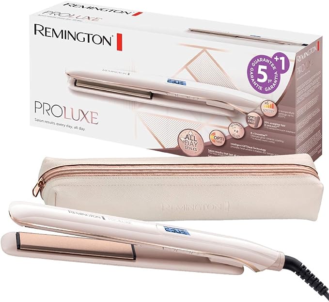 La plancha de pelo ProLuxe de Remington también destaca por su pantalla digital y su funda resistente al calor, que te permitirá guardarla de forma segura. Además, su diseño ergonómico y su bisagra de cierre facilitan su uso y almacenamiento.
