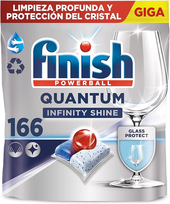 ¿Quieres una limpieza profunda y un brillo excepcional en tu vajilla? Descubre las pastillas para lavavajillas Finish Quantum Infinity Shine. Con protección para el cristal y sin necesidad de prelavar, mejora tu experiencia de lavado. ¡Aprovecha ahora su buen precio!
