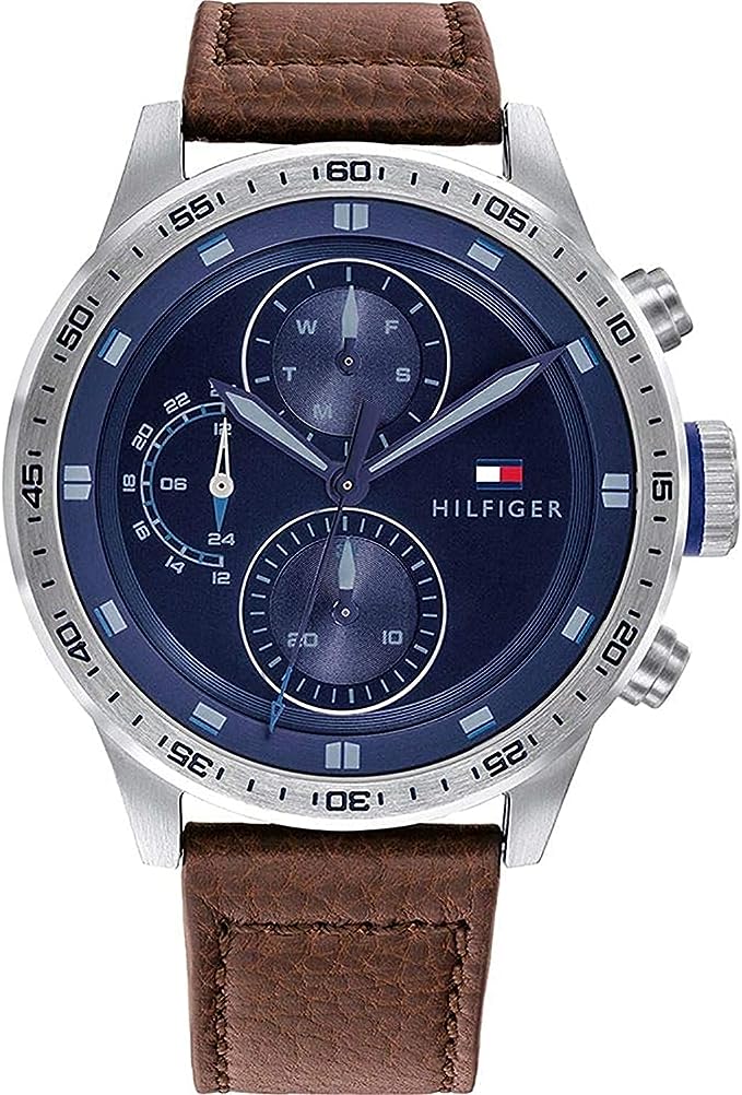 Pero eso no es todo, este reloj también destaca por su resistencia al agua de 5 ATM, lo que significa que puedes usarlo sin preocuparte por salpicaduras o incluso sumergirlo brevemente. Su correa de piel marrón claro le da un aspecto elegante y su anchura de 22 milímetros lo hace cómodo de llevar en la muñeca.