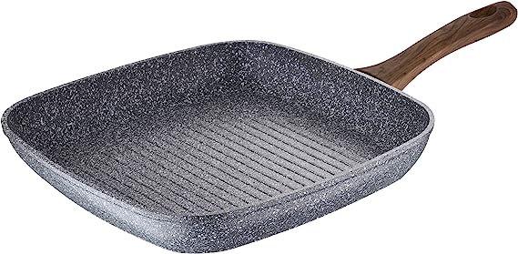 La colección Daimiel de San Ignacio está fabricada con los mejores materiales para garantizar una resistencia y eficiencia inigualables. Esta sartén en particular combina el aspecto de la piedra con un mango de efecto madera, lo que le da un toque elegante y natural a tu cocina. Con unas dimensiones de 28x28x4,5 cm, esta sartén es perfecta para asar a la parrilla.