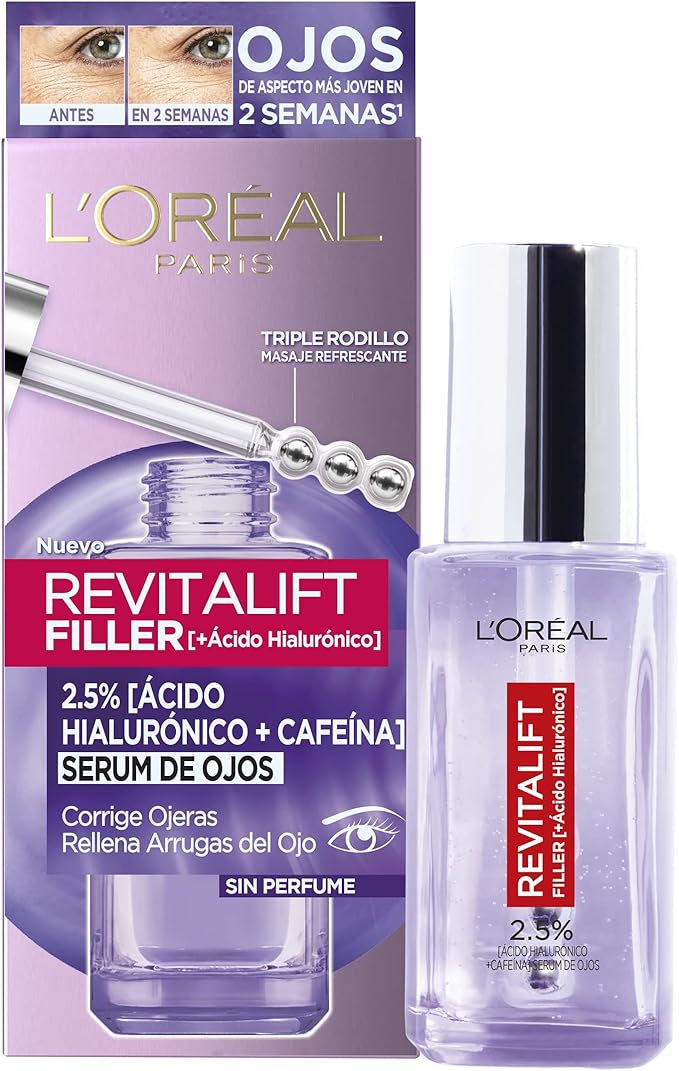 Si estás buscando un chollo en productos de belleza, no puedes dejar pasar el Sérum de ojos Revitalift Filler de L’Oreal Paris. Este increíble producto contiene Ácido Hialurónico y Cafeína, dos ingredientes clave para hidratar intensamente la piel alrededor de los ojos, rellenar las líneas de expresión y corregir las ojeras.