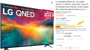 Para poder realizar la compra de este televisor por el precio de 551,66€ hay que asegurarse de tener marcada la opción ‘Aplicar cupón de 97.34€’, de tal forma a la hora de tramitar el pedido el descuento total será un 45%: