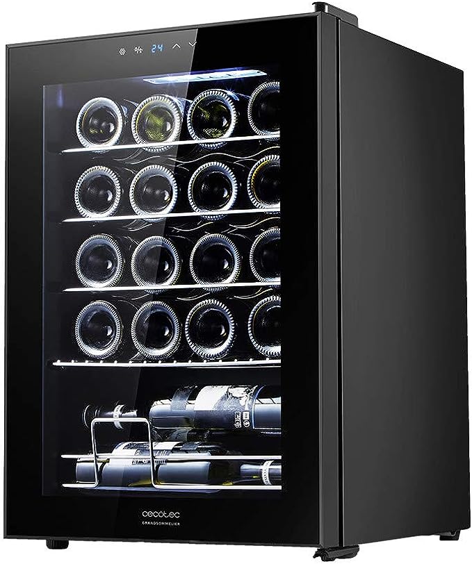 Si estás buscando una vinoteca de gran capacidad y alto rendimiento, te presentamos la Cecotec vinoteca GrandSommelier 20000 Black. Con capacidad para 20 botellas, este electrodoméstico principal cuenta con un compresor incorporado que garantiza un bajo nivel sonoro y un rendimiento excepcional. Además, es muy silencioso y no produce vibraciones, gracias a sus únicamente 42 dB de ruido.